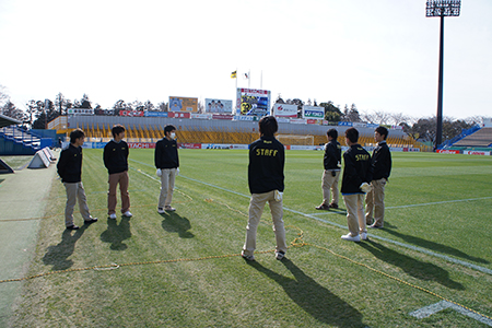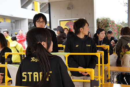 ①スタジアムやイベント会場、ライブ会場等での来場者の案内誘導やチケットもぎり作業など